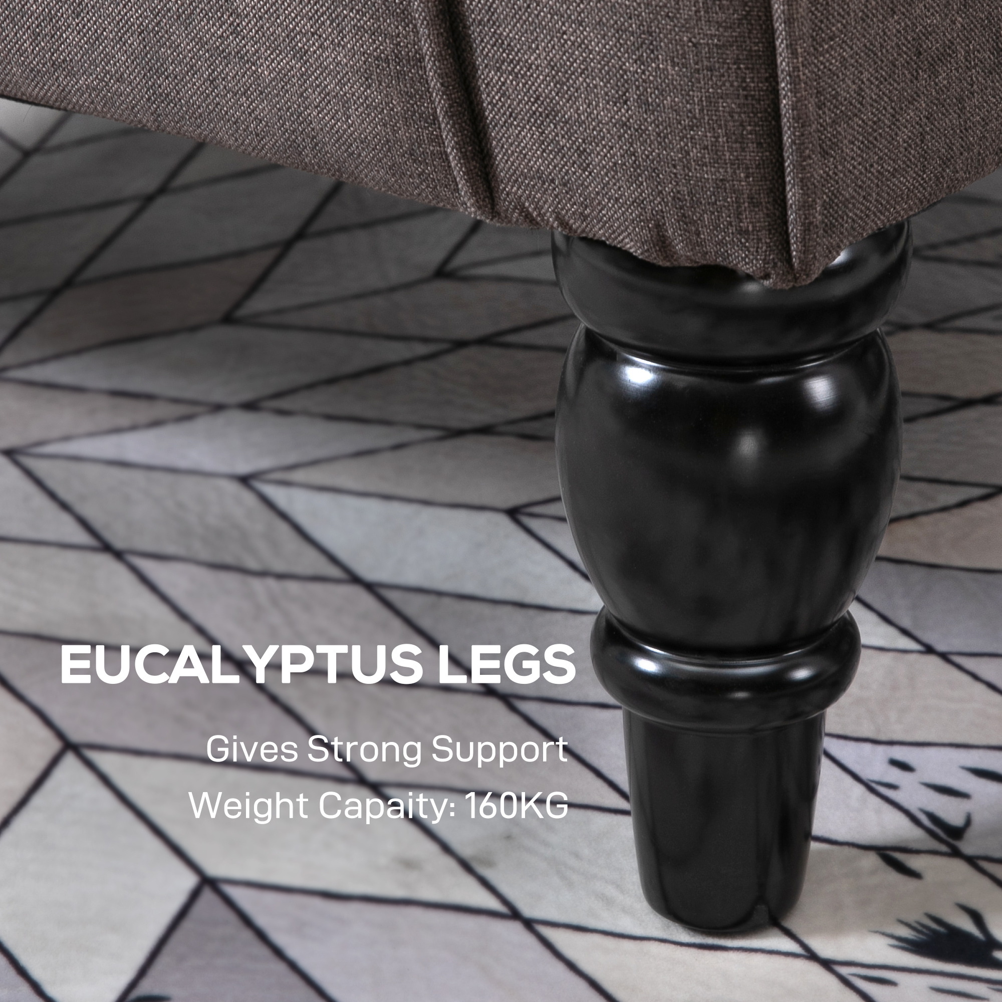 - Wooden frame and legs for strong support