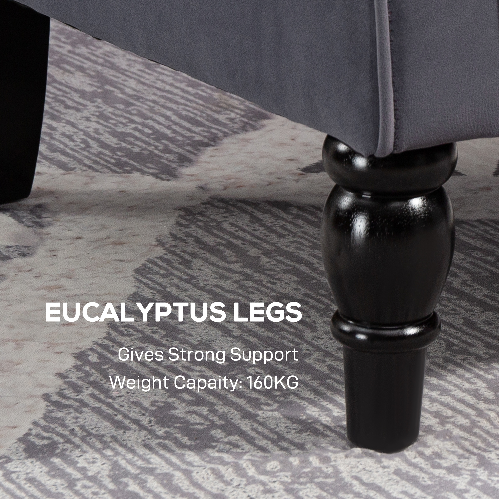 - Velvet-feel upholstery offers a soft and cosy surface