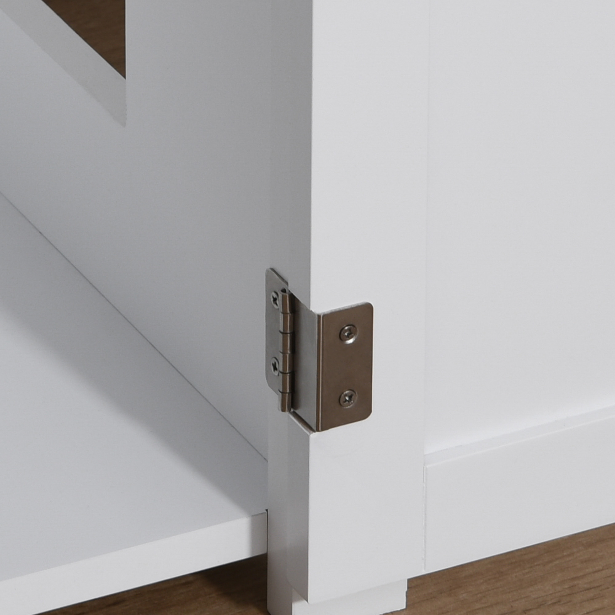 This PawHut cat litter box furniture merges together a space for your pet, with space for you. It's formed of a bottom cupboard, with two shelves above. The cupboard comes with a removable wall to expand the two-part space if wanted. It also features a cut-out entrance for your cat to enter and leave easily by themselves. The structure of cat litter furniture is made from durable MDF, finished with two doors with metal handles and magnetic closures for easy access.
