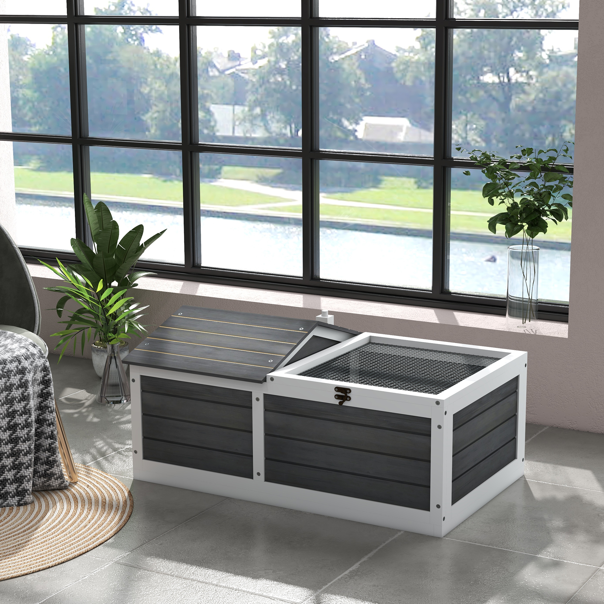 Tortoises thrive ideal in their natural habitat – that's why they'll love this PawHut tortoise table. Spacious and comfortable, there's a built-in hide box that is sheltered and private – perfect for sleeping in. Getting UV rays is important, so whether it's from the sun or a UV lamp, they'll use the basking area to wander, unwind and revel in soothing warmth. Easily clean their haven by simply opening the roof. Invest in their happiness today – a life of comfort, and quality awaits.