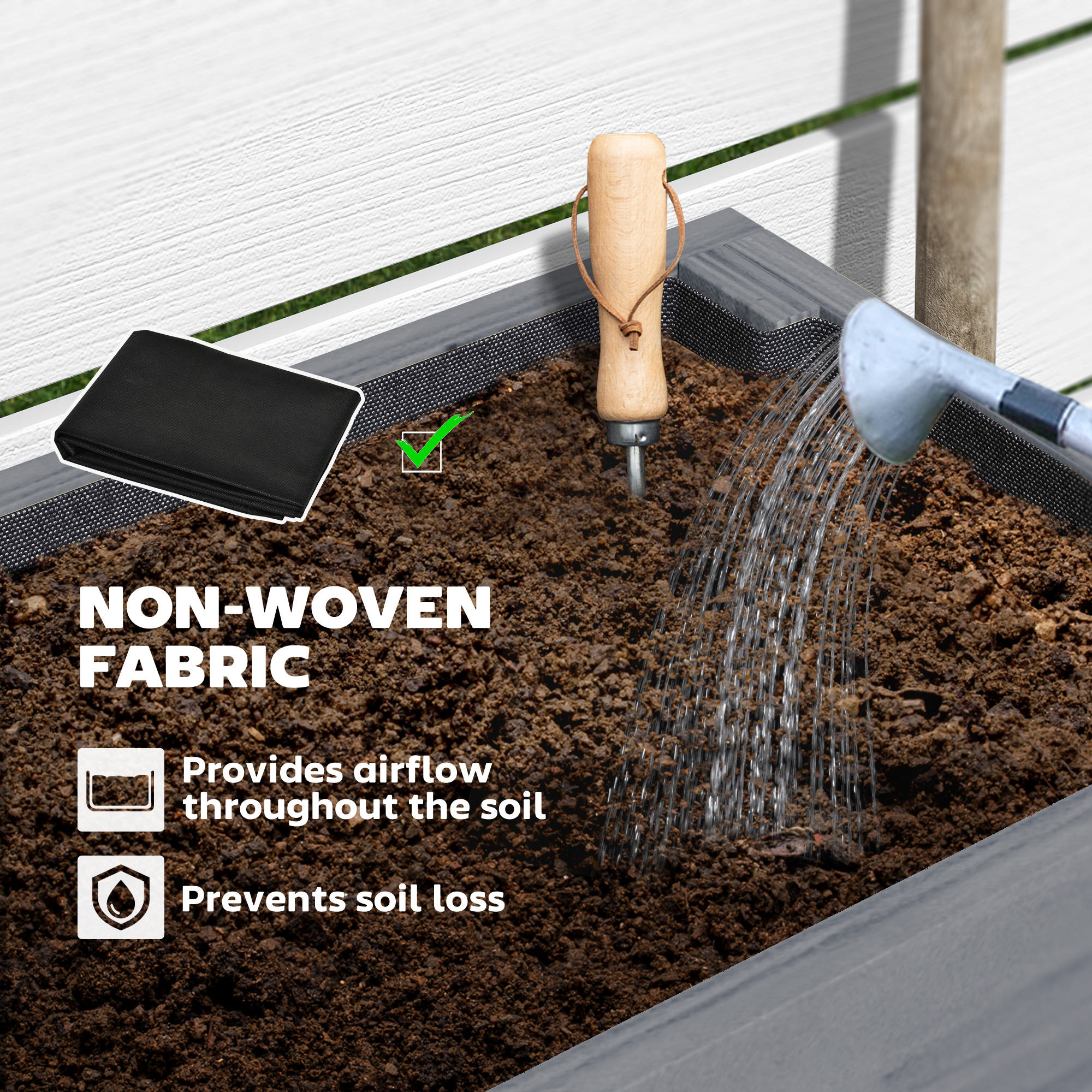 - Bed lining provides holds soil and plants in place