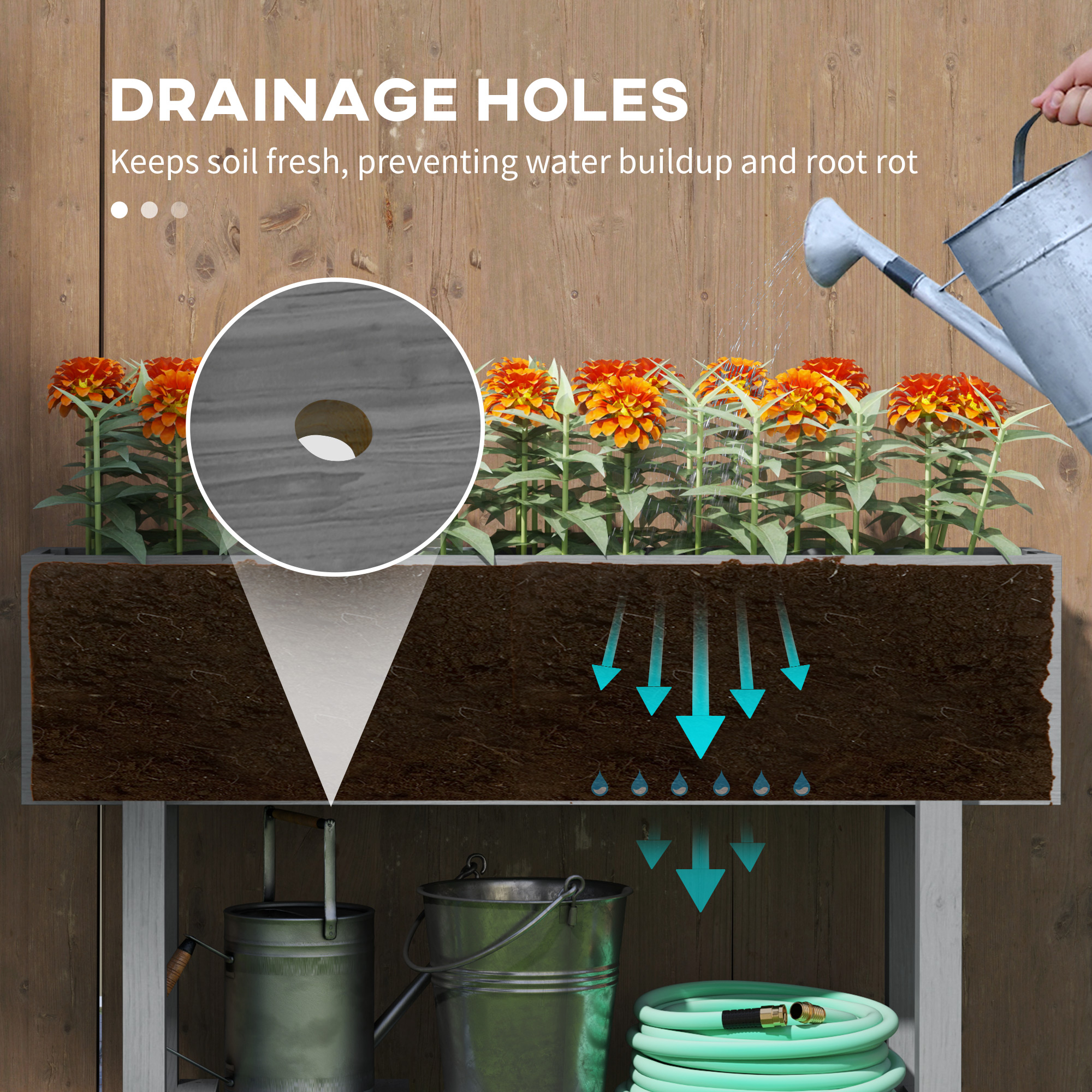 - Drainage holes prevent water build-up in garden bed