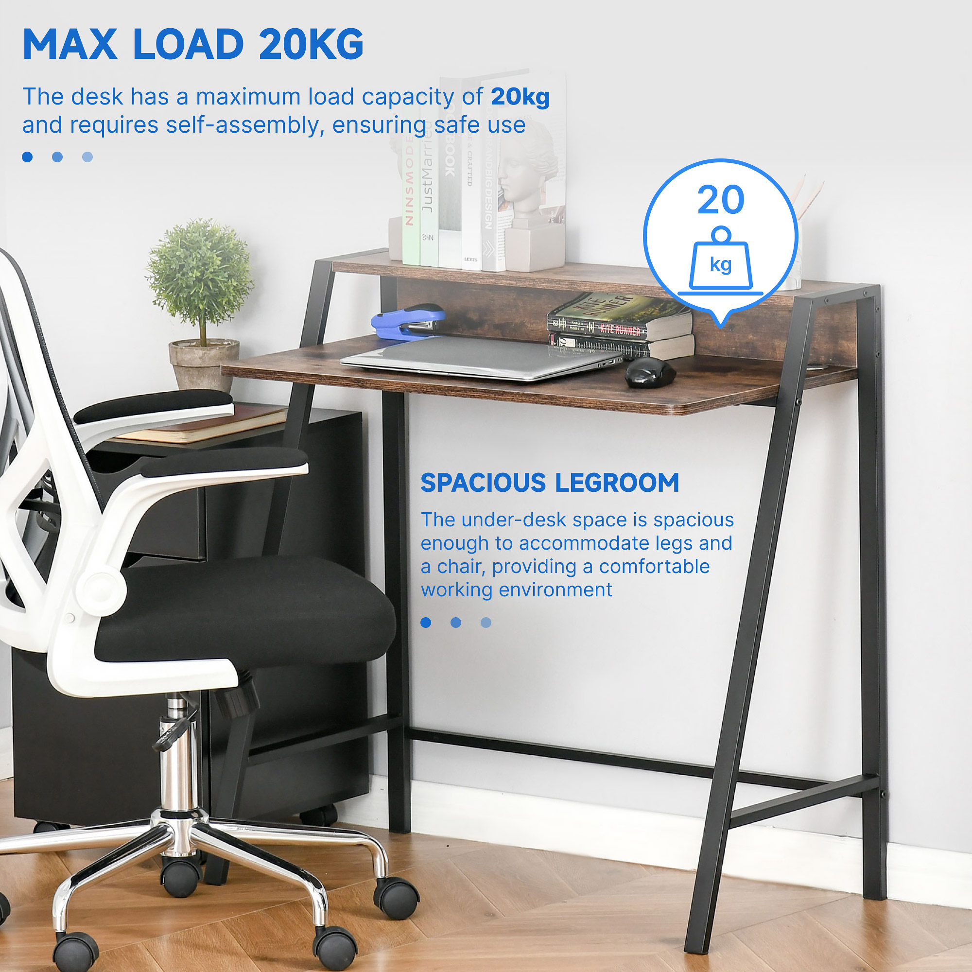 A minimalistic design, finished in a fresh and neutral colourway - this pc desk, from HOMCOM, will welcome itself into your home or office space with ease. Using solid steel for a frame which keeps itself balanced, it's fitted with a board table top, which comes in a two-tier design: the main level gives you plenty of room to work, whilst the back shelf allows for storage of your working essentials. It's finished with a melamine coating for light protection, as well as being easy to clean.