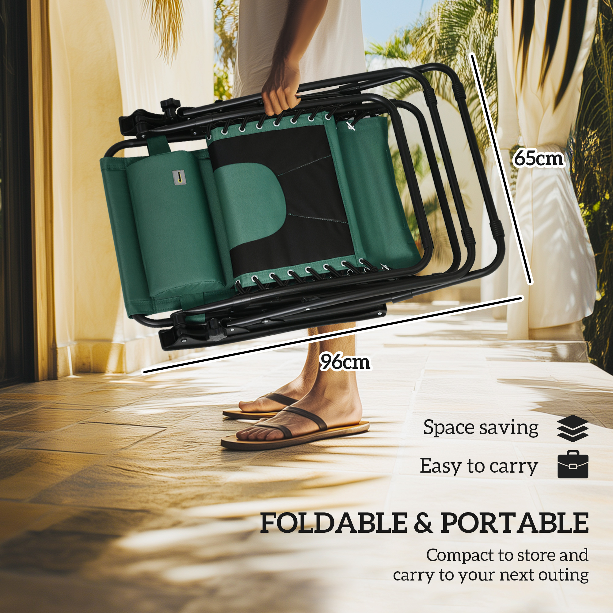 - Folding Dimension: 96L x 65W x 14H cm